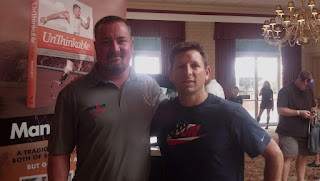 Incredibly, I walked into the main hall and right there was another guy I admired. John Pyle. A vet whom had ran across America, flag in hand, for wounded veterans everywhere. I had talked with John before where I coach at Fit2Run, and even then I noted his air of strength. John is a little more grounded then Scott, not to mention a little older. He reminds me of that guy in the motorcycle movies whom hangs out in the biker bars but is not part of the gang. The character whom always ends up getting hit over the head with something on accident and then ends up taking out the whole gang. Very cool, positive, respectful and passionate about his cause, but to be on his bad side seems like somewhere I would not want to be.