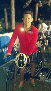 All of the athletes I knew had rented hotel rooms in Venice, but the ride was less than an hour, and I thought I would be better off sleeping in my own bed and having some solace time, prior to the race. I was very happy I made that decision. The ride down that early in the morning was easy and fast. I had plenty of time to rack my bike in transition and lay out my shoes and stuff before the race. As I walked up to transition I heard the announcer officially cancel the swim and proclaim the pros would have a 1.5 mile run prior to the bike but the age groupers would have a La Mond Time Trial start. While the disappointment came over me I was also curious about this time trial start as I had never had that experience before. Upon finishing I caught up with Pete and Jaime and socialized with them, Carola, Laurie, and some new friends we made.